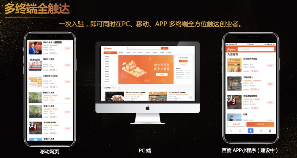 3、多終端全觸達:一次入駐,即可同時在PC、移動、小程序等多終端全方位觸達創業者(未來還將擴展APP等更多終端);