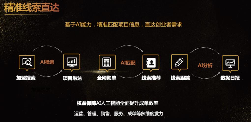 4、精準線索直達:基于百度AI能力,精準匹配用戶需求和加盟項目,對投資者線索做真實性驗證,確保項目方第一時間可獲得精準線索;