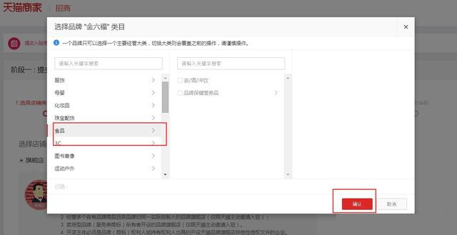 (3) 點擊"選擇類目"按鈕進行經營大類及具體類目的選擇,然后點擊"確認"。